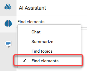 In the AI Assistant pane, click the Chat option, and select Find elements.