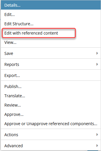 - Edit with referenced content: If a user selects it, all of the referenced content is expandable and editable.