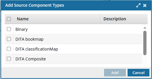On the Add Source Component Types screen,