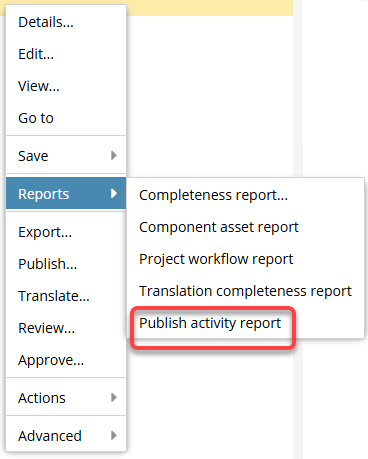 Create a publish activity report for one project component