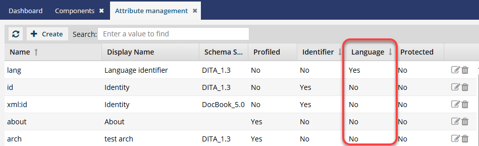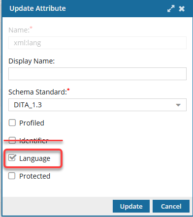 <xml:lang>). - You can create your own language identifier attribute as long as no other attribute already uses the Language option.