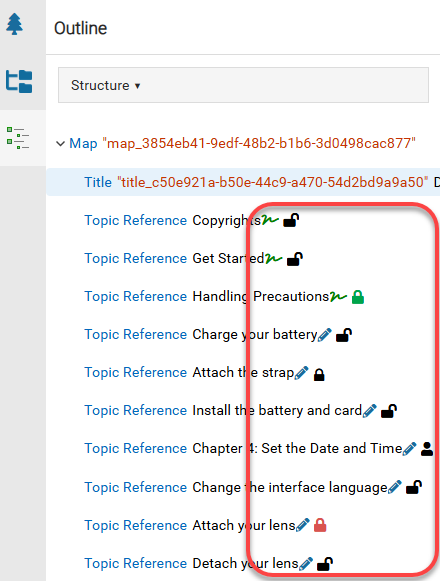 Unlocking topics. The Oxygen map editor also provides you with options to unlock a component so you can edit the content, and then lock it again in the map editor.