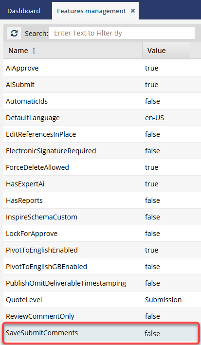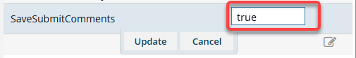 By default, the SaveSubmitComments feature is OFF (false).