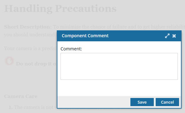 The comment is optional and can be left blank. - If the SaveSubmitComments feature is OFF (false), the changes are saved and the Oxygen editor is closed.