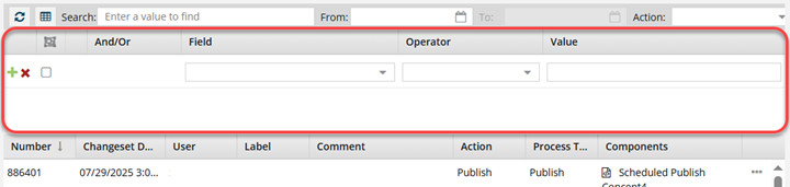 - Starts With: show only changeset records where the Component Name begins with the characters you entered in Value