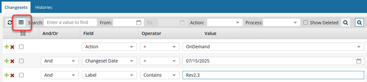 - = (Equals): show only changeset records that have the exact component name you enter in Value