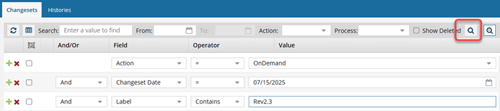 - You can use basic search tools to find changeset records by keyword, however this basic search only looks in the User, Label, and Comment fields.