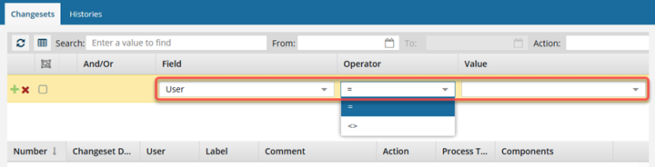 Advanced search is available only on the Changesets tab. You cannot open Advanced search on the Histories tab. - The Advanced search feature in Changesets does not include Advanced content, so you cannot use XPath expressions here to search.