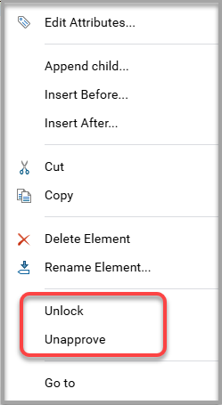 After you make your changes and save and submit the component, you can go back to the Oxygen map outline panel, right-click the unapproved topic, and select Lock.