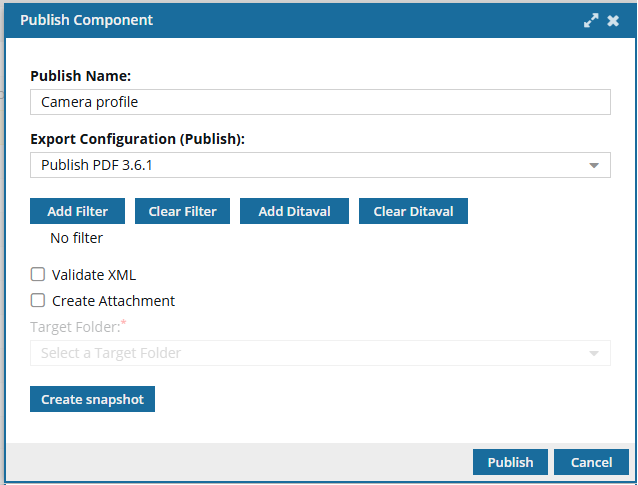 Result: You see the name of the DitaVal file you selected on the Publish Component screen.