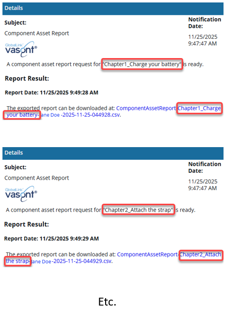 When you run a report on a multiple components, Inspire always creates a separate report for each component. In this case, Inspire also adds the component name to the report's CSV file name.