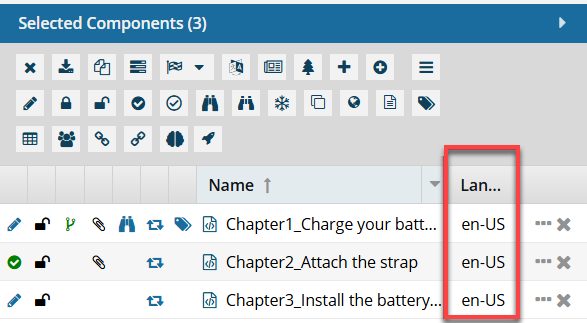 - The next time you open the Selected Components panel, the Language column is displayed.