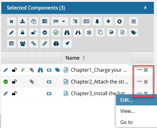 - Use the following toolbar options to manage the components: