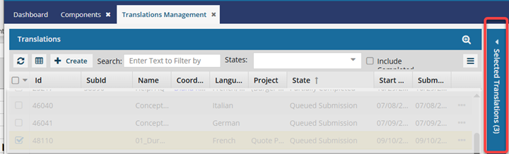On the Translations Management tab, in the list, find the translation jobs that you want to get a quote for. Make sure it's in the Queued Submission state and uses a Project that allows the quote feature to be used.