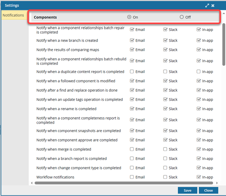 - If you want to set preferences at the module-level for Components, global Notifications must also be On. Set global notification preferences.