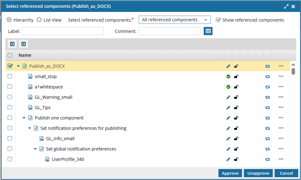 - If you want to unapprove a referenced component individually, you can follow the steps in Unapprove a component in the browser.