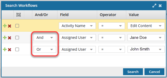 To find more exact matches, you can search for multiple Fields to include (And, Or).