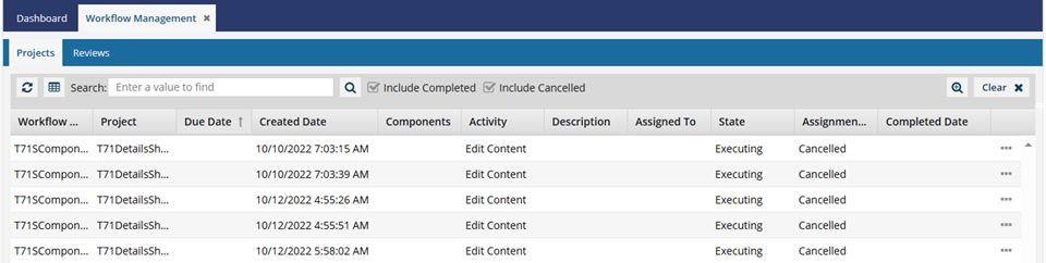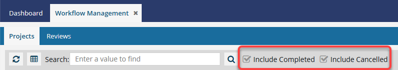 By default, workflows with a task that have an Assignment State of Completed and Cancelled are not included in search results.