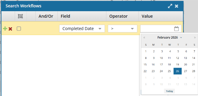 - Field as Completed Date, Operator as Greater than, in Value you can click