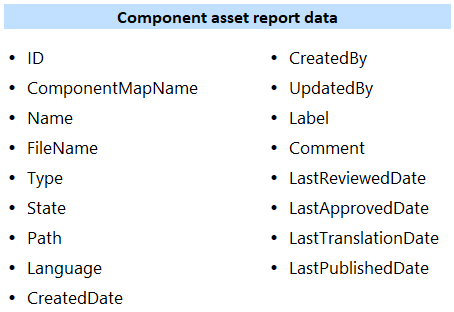 You cannot create a Component asset report for the following types: