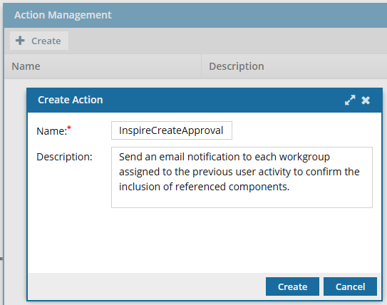The Topic Workflow template Inspire provides includes an Activity for approving content. By default, the Transition from the Review Activity to the Approve Activity is completed manually by the user in the Reviewer Workgroup. To automate the approval process, you can add an Action to have Inspire send notifications to confirm components to be included in the approval screen.