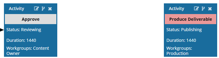 However, if a workflow uses this template, when the last connected Activity is completed (Approve), the workflow will not progress to the next Activity (Produce Deliverable) without a transition.