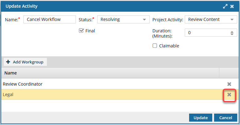 Update an Activity's workgroup