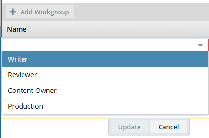 1. Select an option such as Writer, Reviewer, or Content Owner, or Production.