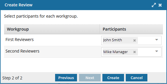 In Second Reviewers, go to the Participants list and select the user who you want to be the last to complete a review. This user can see the comments of the first reviewer.